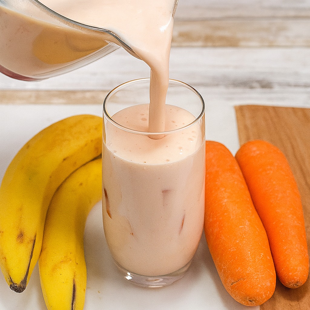 Тази напитка съчетава най-доброто от моркови, банани и мляко, за да създаде смути, което е едновременно вкусно и питателно.