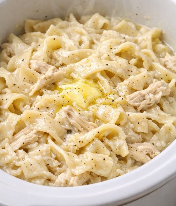 Всяка зима, когато вятърът започне да блъска прозорците и полетата утихнат, изваждам старата си бавна готварска печка и приготвям тези пилешки нудли в амишки стил, както правеше баба ми. Толкова е просто и честно, колкото може да бъде селската кухня: дебели яйчени нудли, крехко нарязано пилешко месо и кремообразен, маслен сос, който се лепи по всяко кифличко. Само с пет съставки и дълго, леко къкрене, получавате онзи вид залепващ за ребрата ви комфорт, който изчезва от тенджерата почти веднага щом повдигнете капака. Тази рецепта е вкоренена в простата, практична кухня на селския Среден Запад, където едно добро ястие е предназначено да ви стопли напълно и да върне всички на масата за секунди.