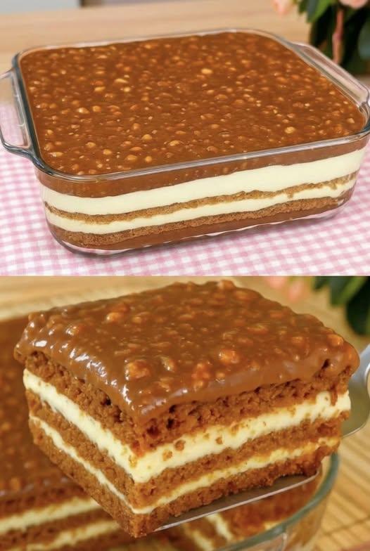 Тази бисквитена торта без печене със сметана и шоколад е изискан десерт, нещо средно между декадентски шоколадов тарт и класическа торта без печене. Бисквитената основа „Мари“ ѝ придава деликатен, леко препечен вкус, който перфектно балансира гладкостта на тъмния шоколадов ганаш. Това е перфектният десерт, едновременно впечатляващ и семпъл, за вечери с приятели: не е необходима фурна и изглежда абсолютно зашеметяващо, когато се нареже.