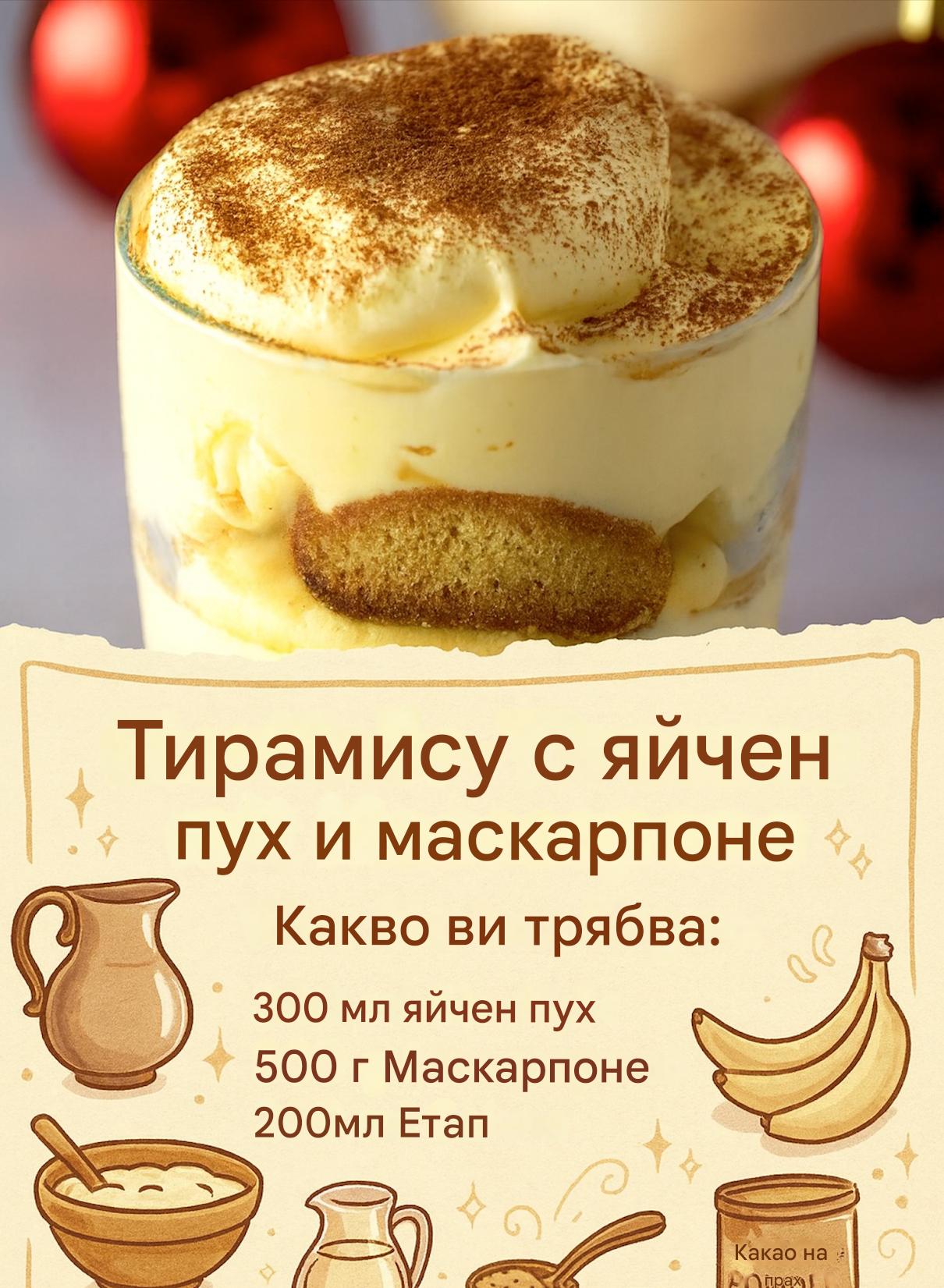 🚫 Без алкохол: Просто заменете яйчния пух с ванилов сос или крем.
