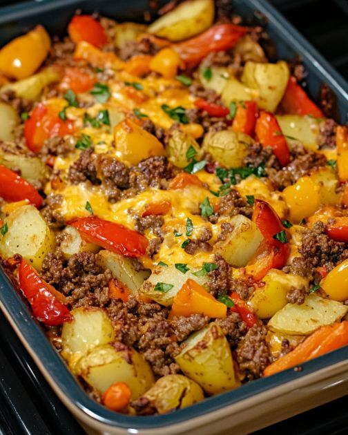Тази обилна яхния от говеждо месо и чушки по югозападен английски е вкусно и засищащо ястие, приготвено в една тенджера. Тя съчетава подправена кайма от говеждо месо, крехки картофи и цветна смес от чушки в богат, пикантен сос, покрит с разтопено сирене чедър. Това просто и засищащо ястие е идеално за вечеря през седмицата.
