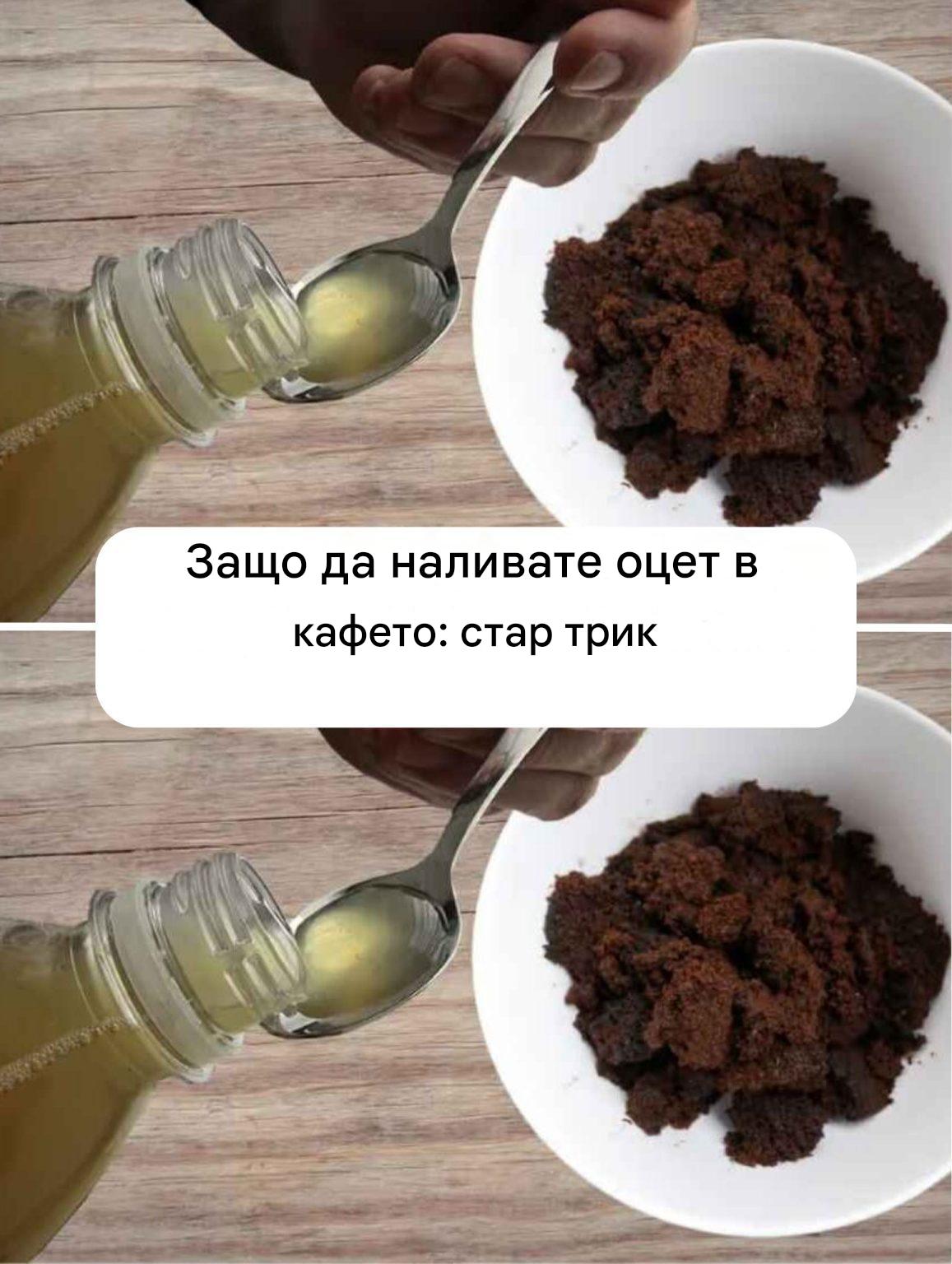 За да направите този скраб, смесете една част ябълков оцет с три части утайка от кафе. За допълнителна хидратация можете да добавите зехтин или кокосово масло. Нанесете върху влажна кожа, масажирайте нежно в продължение на две минути и след това изплакнете обилно с топла вода.