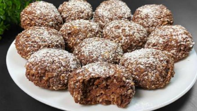 Смесете горните съставки и разбъркайте до гладкост. Печете върху тава за печене, покрита с хартия за печене, в предварително загрята фурна на 180°C за около 30 минути. Поръсете с пудра захар, ако желаете.