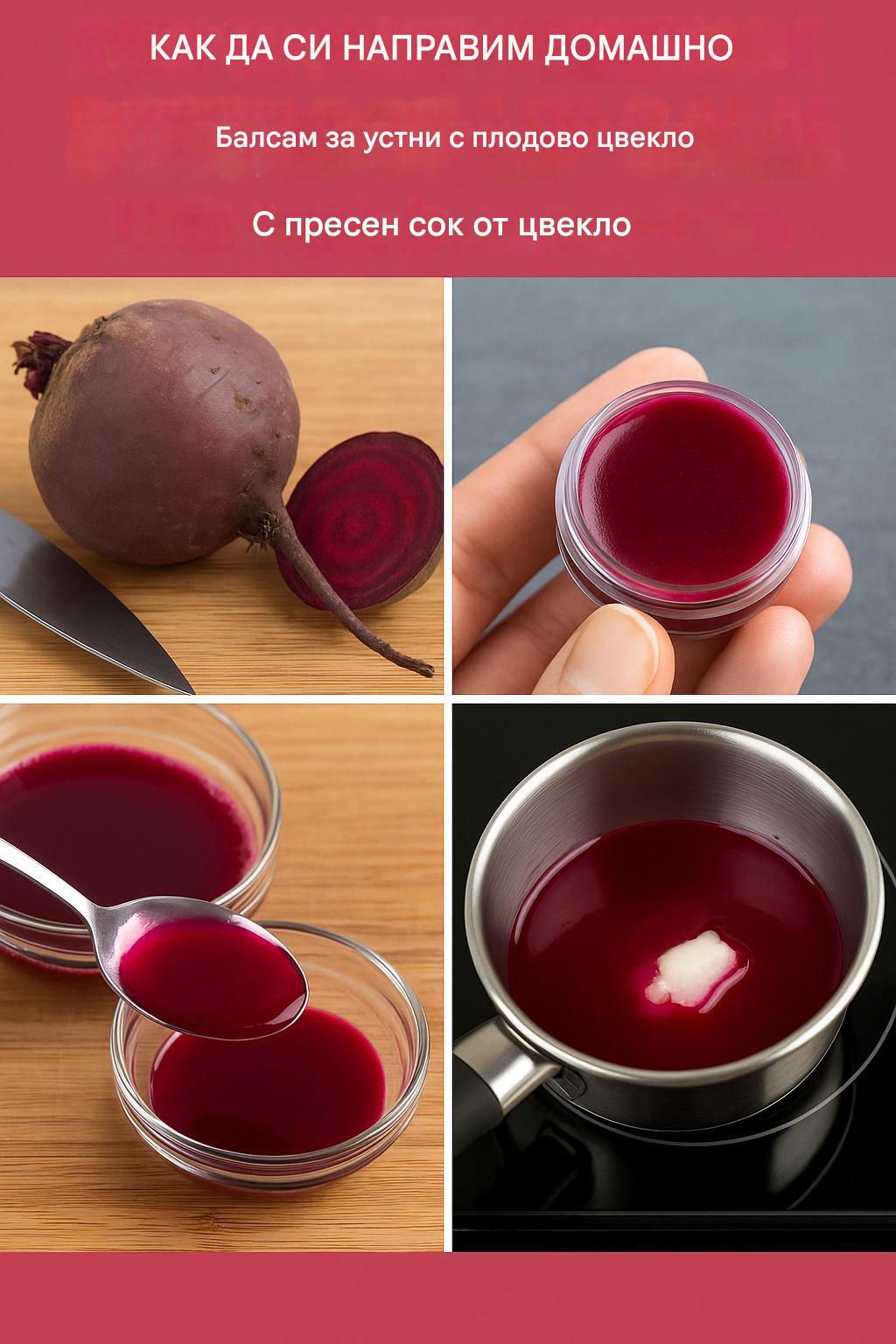Приготвянето на собствен балсам за устни от цвекло у дома е не само забавно, но и естествен начин да поддържате устните си меки и гладки. Благодарение на подхранващите витамини и антиоксиданти в цвеклото, както и на естествения му пигмент, устните ви ще получат красив, розов блясък. Нека започнем с инструкциите за домашен балсам за устни от цвекло, използвайки пресен сок от цвекло!