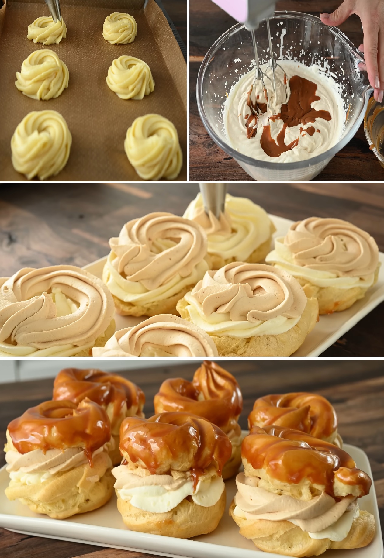 Оставете тестото настрана и го оставете да се охлади. Постепенно добавете 4 яйца към охладеното тесто.