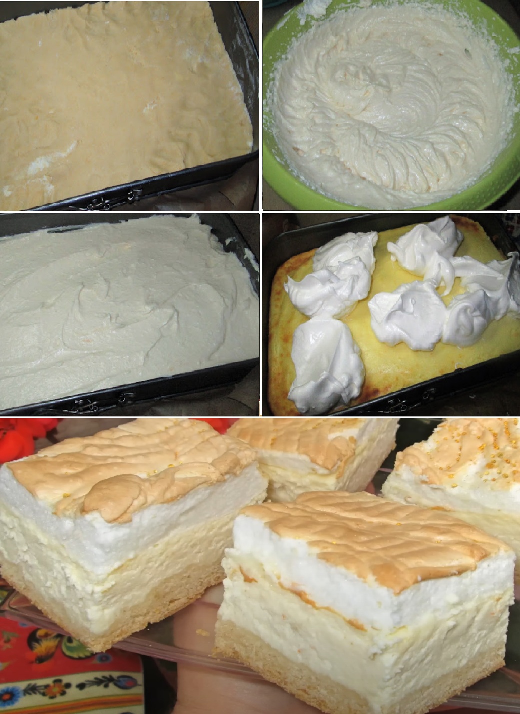 Кекс с мека основа и чийзкейк пълнеж със сняг, върху който след печене се образуват златисти капки, откъдето идва и името росен чийзкейк. Тесто