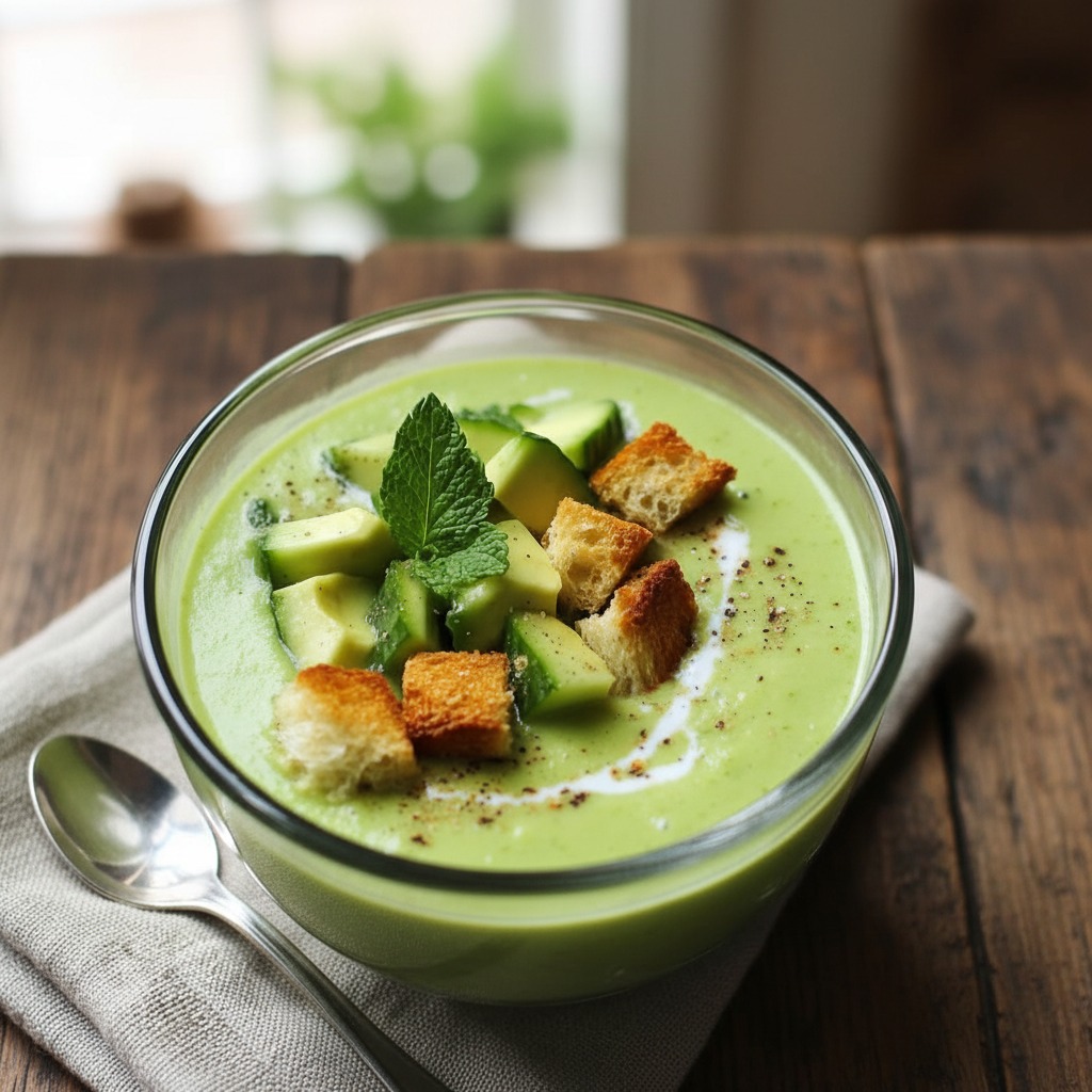 Вълшебната смес: В блендер смесете краставиците, авокадото, киселото мляко, чесъна, сока от лайм и ментата.