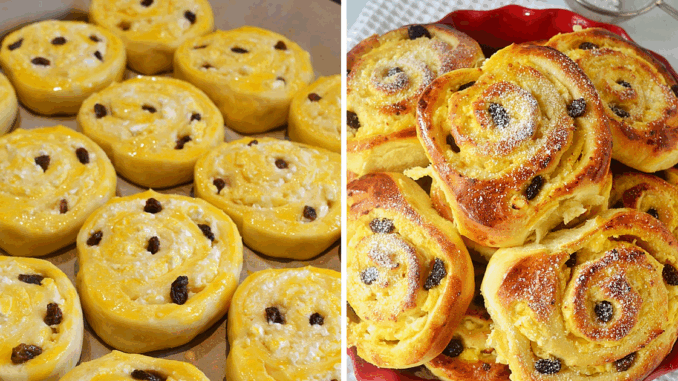 Тестото е много меко и леко. А пълнежът от извара и ванилов пудинг е невероятно вкусен – благодарение на него тестото остава меко и сочно дори на следващия ден и не изсъхва. Охлювчетата са идеални за опаковане за училище или работа, като второ ястие след супа или като закуска за семейството през уикенда.
