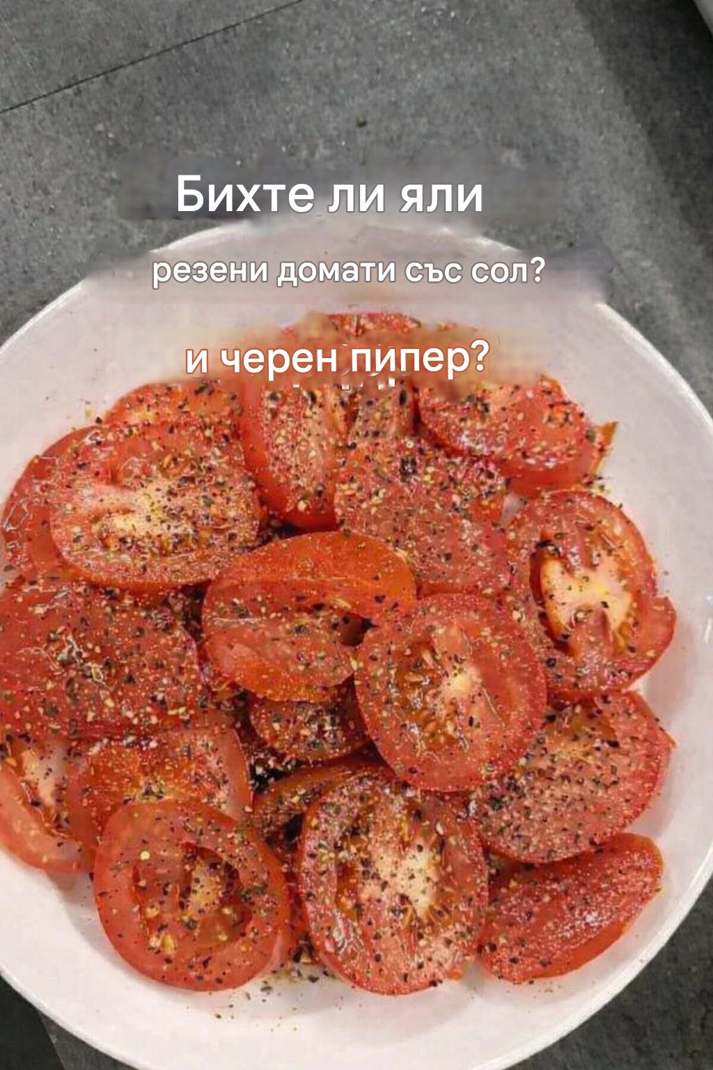 Просто, свежо и неустоимо: Нарязаните домати със сол и черен пипер са класическа гарнитура, която може да разнообрази всяка вечеря. Използването на зрели домати и добавянето на щипка сол и черен пипер наистина подчертава естествения им вкус. Идеални като гарнитура, лека закуска или като част от салата.