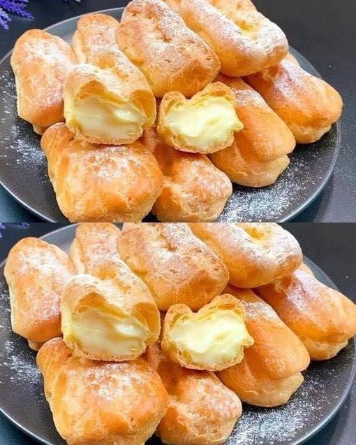 Това са пържени сладкиши с кремообразен пълнеж (подобни на еклери) 😍
