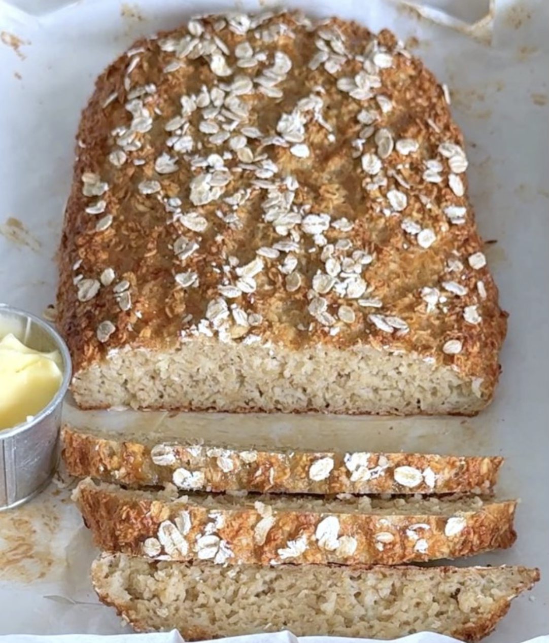 ЗДРАВОСЛОВЕН БИСКВИТЕН ХЛЯБ С ОВЕСЕНИ КАШИ Извара, овесени ядки и яйца са в основата на този много сочен и фантастично вкусен хляб, без никакво пшенично брашно! Те се пекат много лесно и не е необходимо да ферментират.