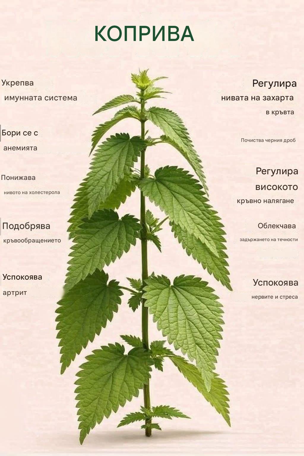 Съставки: 1 супена лъжица сушени листа от коприва (или малка шепа пресни коприви) 1 чаша (250 мл) гореща вода ½ чаена лъжичка пресен лимонов сок 1 чаена лъжичка суров мед (по избор)