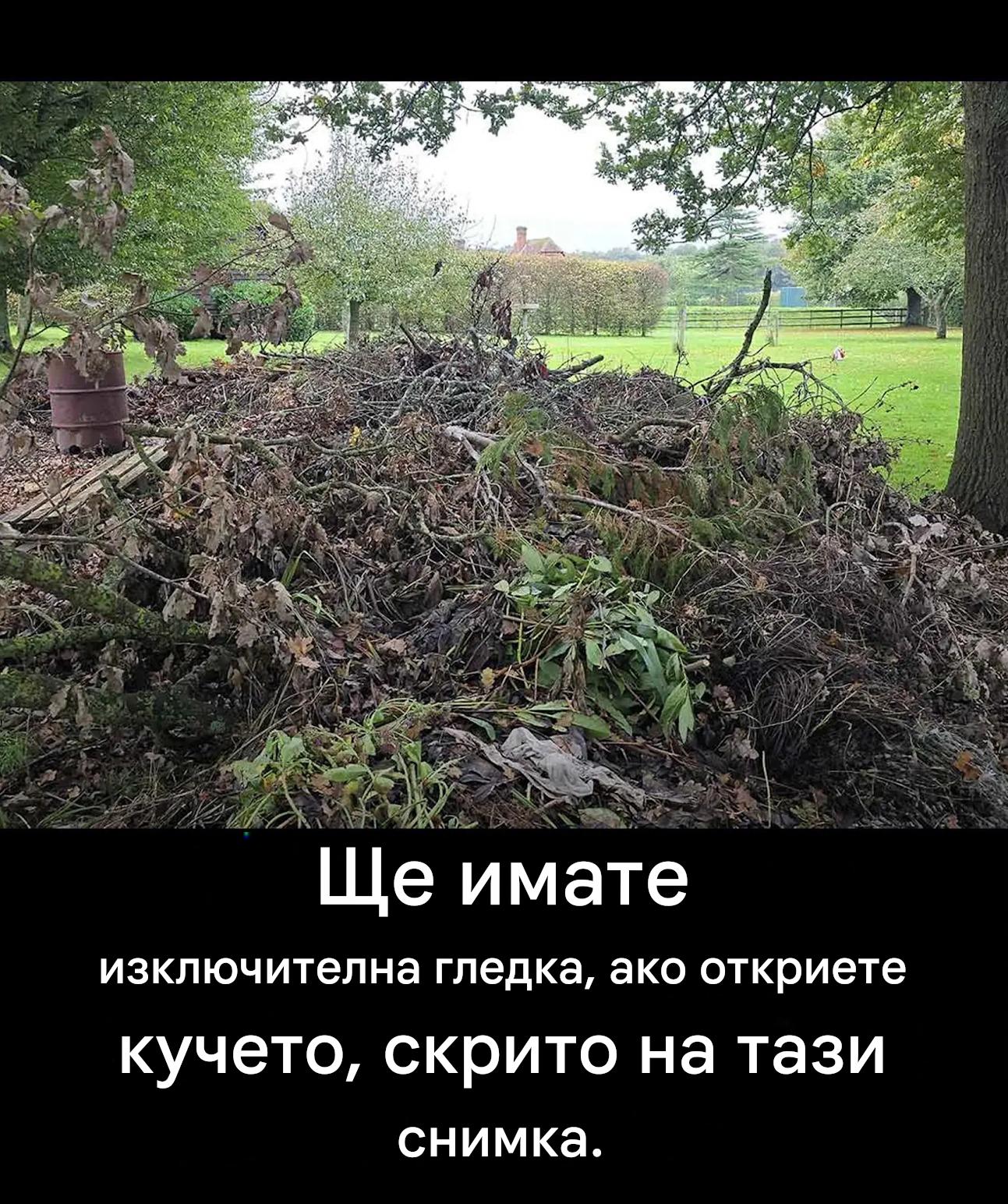 Обичате ли пъзели, които събуждат любопитството ви и ви карат да забравите всичко около вас за няколко минути? Тогава обърнете внимание: Тази снимка крие тайна, която остава скрита за повечето хора. На пръв поглед виждате само купчина дърва, няколко листа, метален предмет… нищо особено. И все пак, скрито там е малко четириного същество. Защо е толкова трудно да се забележи? Ще разберем заедно.