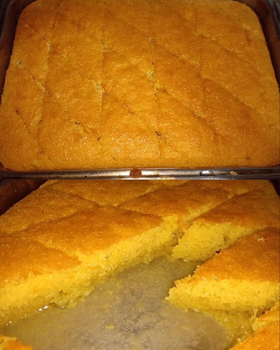 Сиропът се приготвя първо, защото трябва да се охлади напълно, преди да се излее върху кекса.