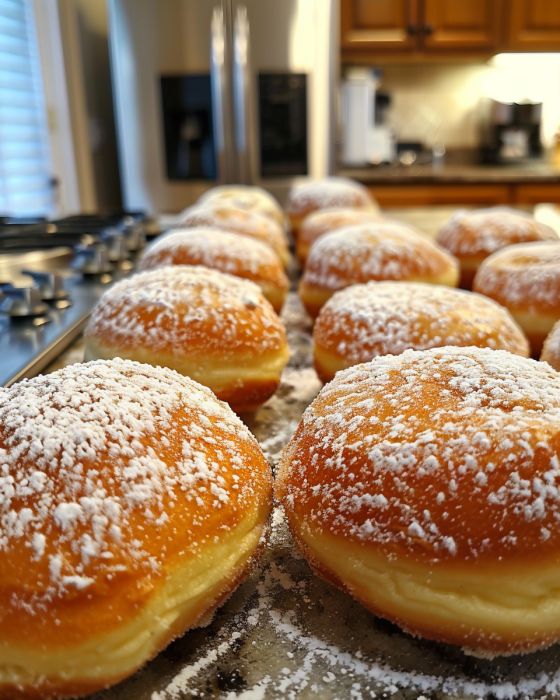 Сервирането на тези красоти директно от фритюрника, поръсени с пудра захар, ще накара любимите ви хора да се насладят на вкус. Комбинирайте ги с чаша силно кафе или студена чаша мляко за децата. А ако се чувствате малко по-разглезени, порция пресни горски плодове може да добави прекрасен тръпчив контраст към богатия кремообразен пълнеж.