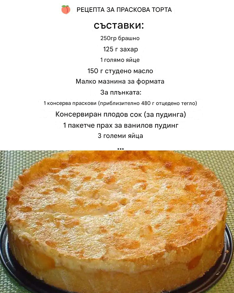 - 1 консерва праскови (приблизително 480 г отцедено тегло)