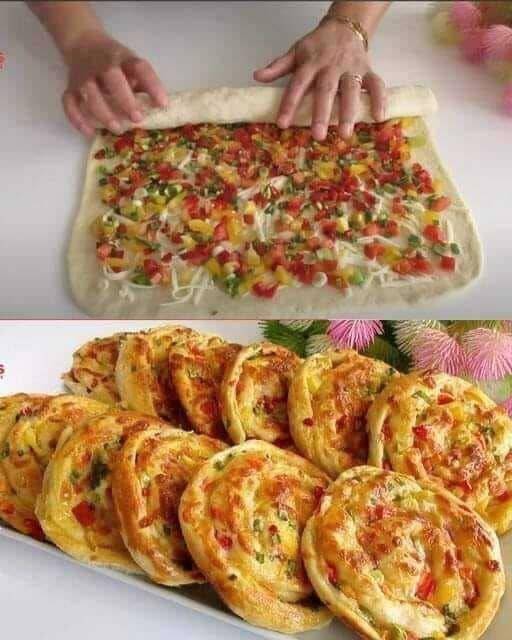 🥐🧀 **Рула от бутер тесто със зеленчуци и сирене – идеални за аперитив или парти закуска**
