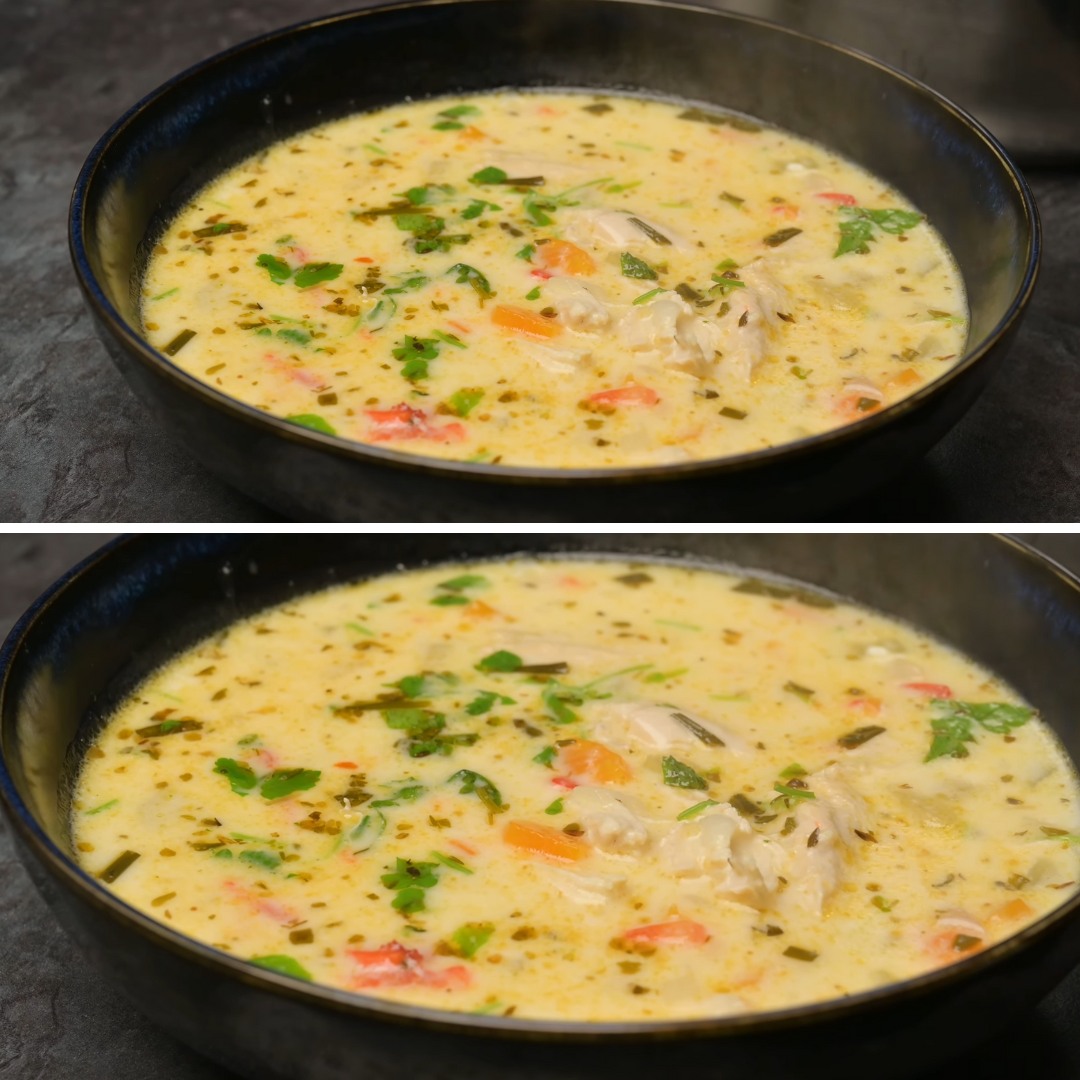 Тази супа е истинска комфортна храна – нежна, кремообразна и пълна с крехко пиле и зеленчуци. Идеална за студени дни или когато имате нужда от нещо питателно, но леко. 🛒 Съставки (за 4 порции):