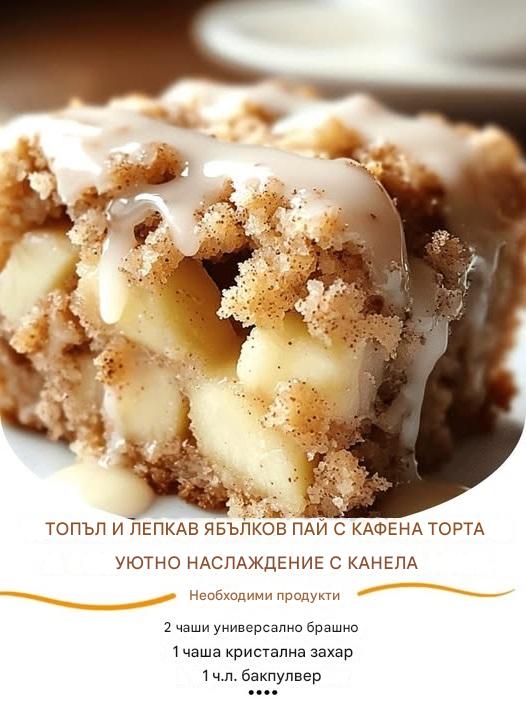 Топъл и лепкав кафеен кекс с ябълков пай