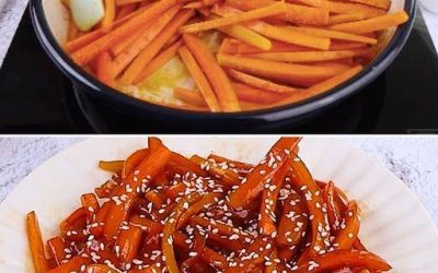 СЪСТАВКИ 5 моркова 30 мл (1/4 дл) екстра върджин зехтин 20 мл (1 1/4 с.л.) соев сос 25 г (2…