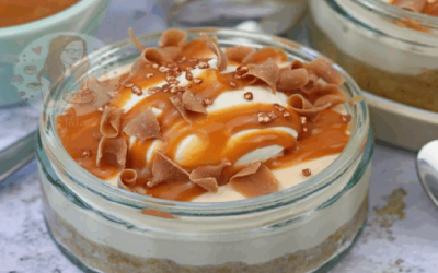 Чийзкейк със солен карамел в чаша.