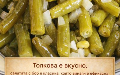 🛒 Съставки За зеленчуците: 1 кг зелен фасул 2 малки стръка чубрица За дресинга: 2 глави лук, ситно нарязани 6…