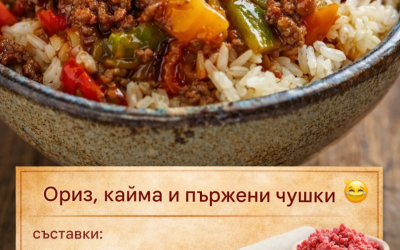 Съставки 400 г кайма (говеждо, микс или пуешко) 2–3 чушки (червени, жълти или зелени), нарязани на лентички 1 глава лук,…