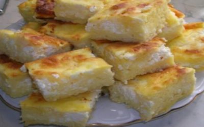 Съставки: 250 г обикновено брашно 150 г пудра захар 1 бакпулвер 500 г извара стафиди или праскови на вкус 5…