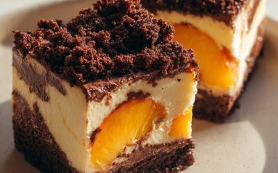 🍑✨ Съставки: Основа: 200 г бисквити 80 г разтопено масло Пълнеж за кекс: 1 кг извара 3 яйца 150 г…