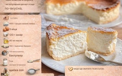 Съставки (за форма с подвижен ръб 24 см): 🛒 Гръцко кисело мляко (гъсто, натурално) – 500 г 🥛 🛒 Яйца…