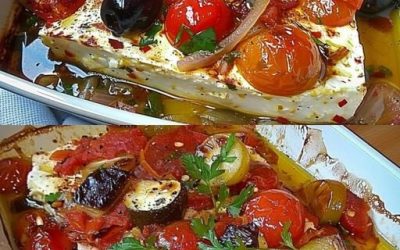Печено овче сирене с чесън и 15 малки домата