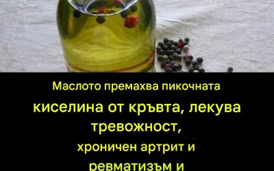 Маслото премахва пикочната киселина от кръвта, лекува тревожност, хроничен артрит и ревматизъм и спира желанието за цигари и алкохол.
