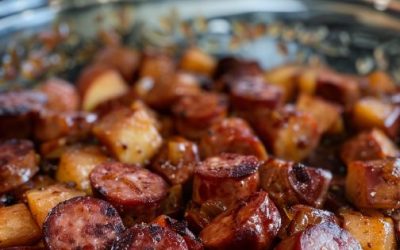 Съставки 450 г колбаса, нарязана на парчета от 1,2 см 2 големи ябълки, обелени, почистени от сърцевината и нарязани 1/2…