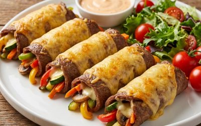 🥘 Съставки 6 тънки резена говеждо месо (карпачо или тънки ескалопи) 1 глава лук 150 г печурки 1 чушка (червена…
