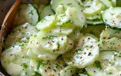 Хладна, хрупкава и освежаваща гарнитура, която балансира свежестта на градинските краставици с богат, пикантен дресинг от заквасена сметана, майонеза и…
